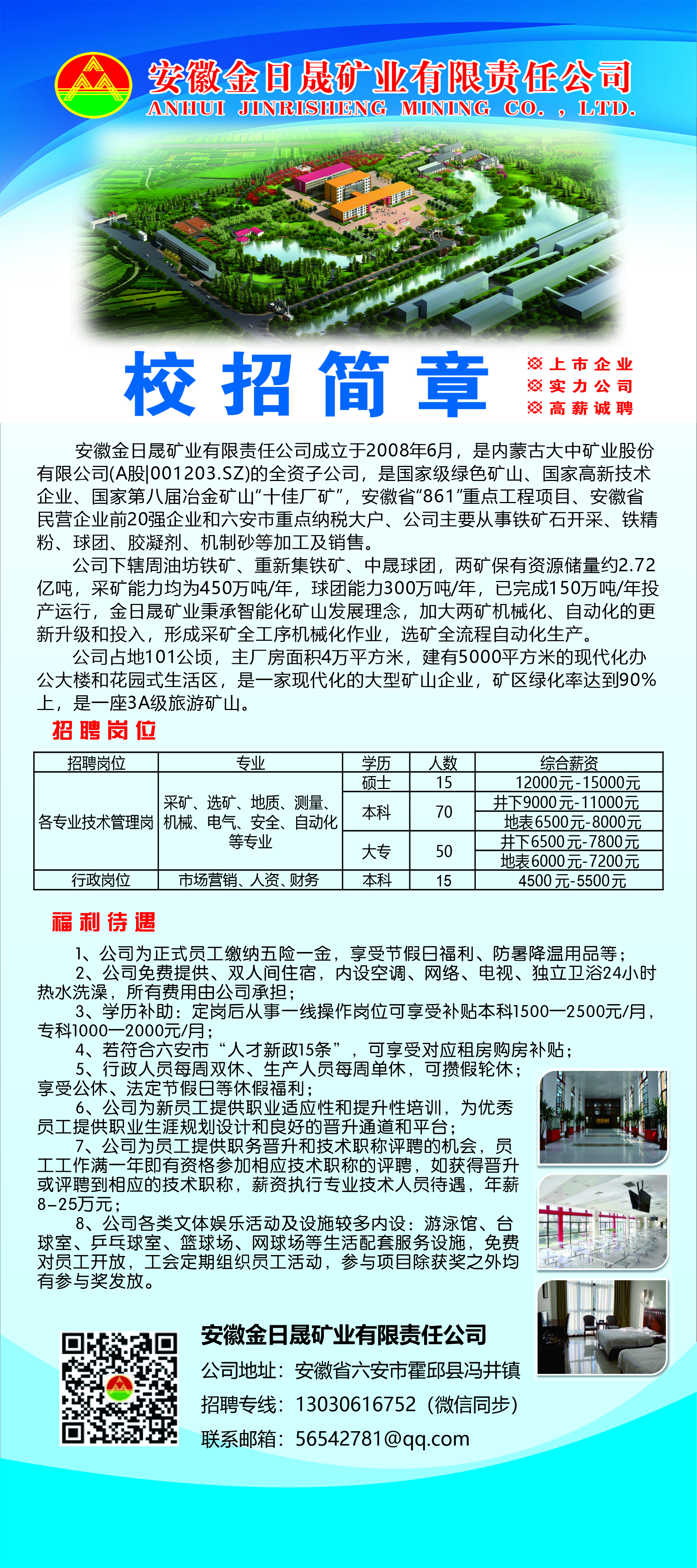 安徽金日晟矿业有限责任公司位于六安市霍邱县冯井镇和范桥镇境内,成立于2008年6月,注册资金21亿元。公司于2008年5月通过公开竞买方式以27.6亿元取得安徽省霍邱县周抽坊铁矿、重新集铁矿矿业权。目前已探明两矿资源储量5亿吨。